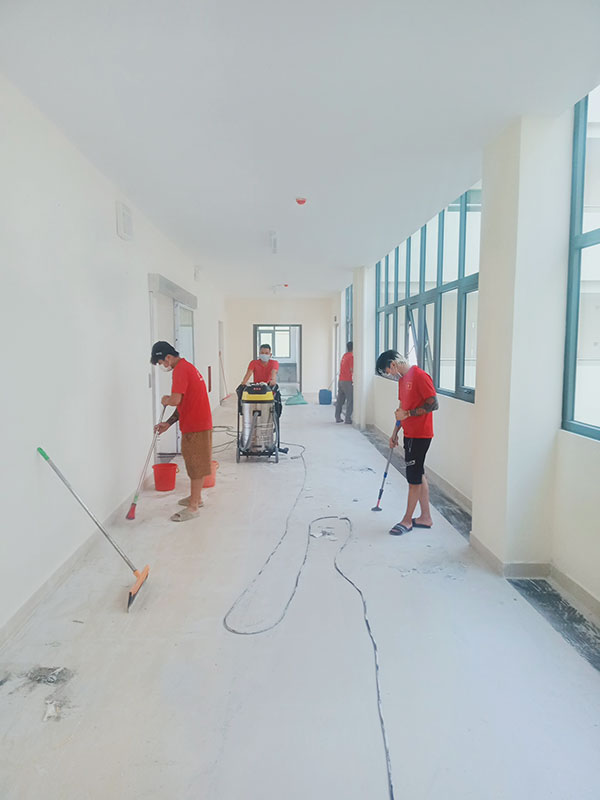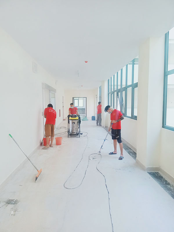 – Vệ sinh làm sạch sàn, sảnh, hành lang, cầu thang: quét và thu gom rác, bụi. Sau đó tiến hành lau ướt, lau khô đảm bảo sàn luôn sạch sẽ và khô thoáng.